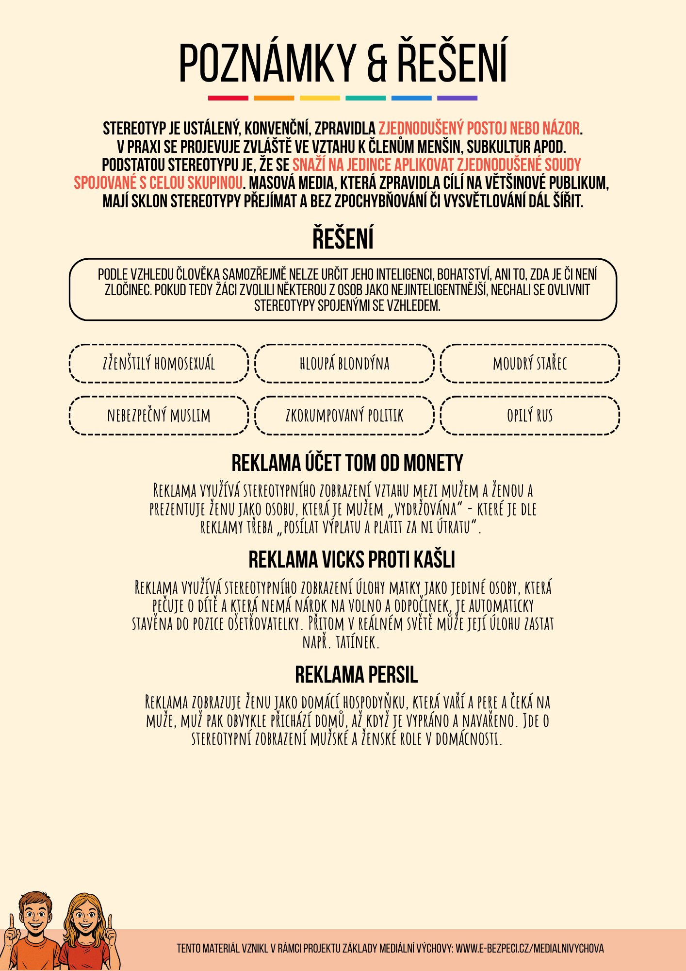 Pracovní a přehledové listy - Mediální výchova
